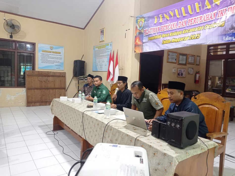 Pemerintah Desa Kaliayu selenggarakan Pelatihan Tanggap Bencana dan Perubahan Iklim, Jumat (21/11) di Balai Desa Kaliayu. Kegiatan diikuti oleh Lemabaga Kemasyarakatan Desa. Narasumber pada kegiatan ini diisi oleh Tim LPBINU Kabupaten Kendal.