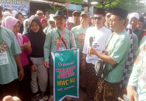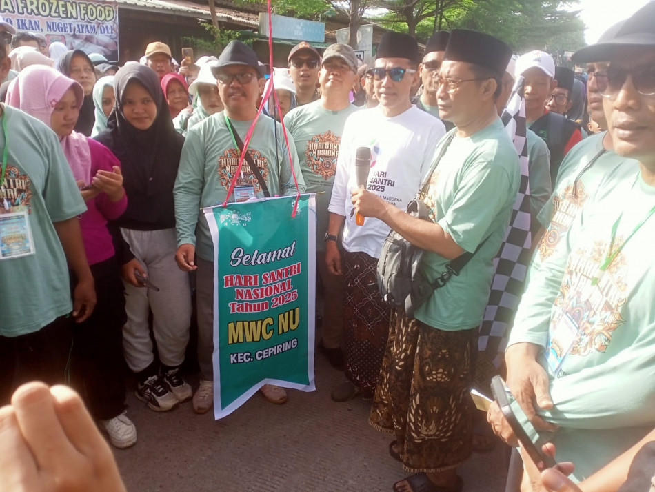 Ribuan peserta ikuti jalan sehat Hari Santri Nasional (HSN) yang digelar MWC NU Cepiring, Ahad (26/10) jam 07.00 di Lapangan Seplangensari Desa Karangayu. Agenda dibuka langsung oleh Wakil bupati Kendal H. Benny Karnadi yang turut serta memeriahkan kegiatan Jalan sehat.